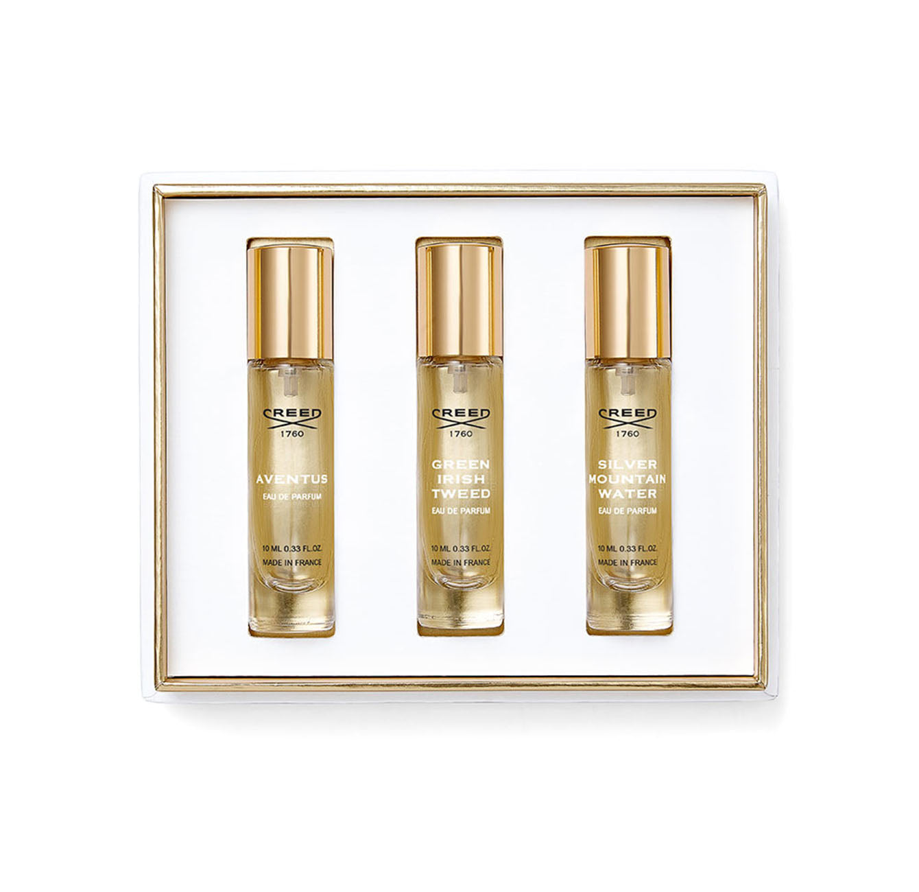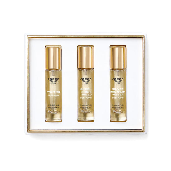 Delight the senses with the Men’s 3-Piece 10ml Fragrance Discovery Set from The House of Creed. This refined trilogy of timeless classics for the modern man who dares to be different is a true work of art, presented in an exquisitely embellished gift box that pays tribute to the house’s unique tailoring heritage and its rich equestrian connections throughout the ages. Crafted to leave lasting scented memories, this coveted collection for men contains Aventus, Green Irish Tweed and Silver Mountain Water, each in an indulgent yet readily portable 10ml size.