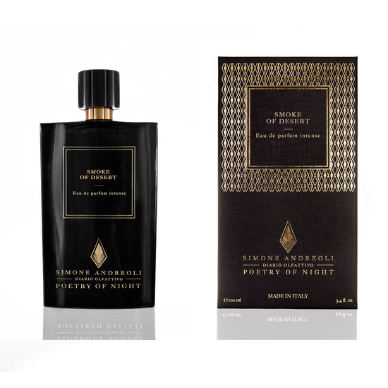 The Scent of Oman- A night time journey into the Oman desert. The night is the poetry of the dark, guardian of drifted thoughts and words with God, the Oman desert, chosen land for the production of the most prestigious incense in the world. An extraordinary resin, in ancient times incense was burned in offering to appease and pay tribute to the gods. SMOKE OF DESERT is a celebration of the most exclusive and pure incense enriched by Elemi, Absynth, Cashmere notes and Leather.