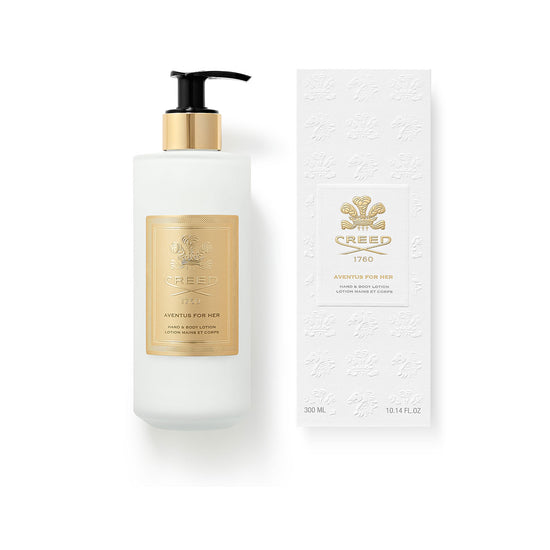 Transform your daily self-care ritual with the Aventus For Her Hand & Body Lotion, infused with one of The House of Creed’s most adored scents of all, where velvety peach entwines with petal-soft rose. As well as Shea Butter, Aloe Vera and Ceramide NP, this lightweight formula is enriched with Vitamin B5, helping to leave the skin feeling moisturised, soft and supple. Crafted with 98% natural origin ingredients and presented in a frosted, recyclable glass bottle, this lotion elevates everyday care into a ritual of sophistication, deeply rooted in The House of Creed’s timeless mastery.