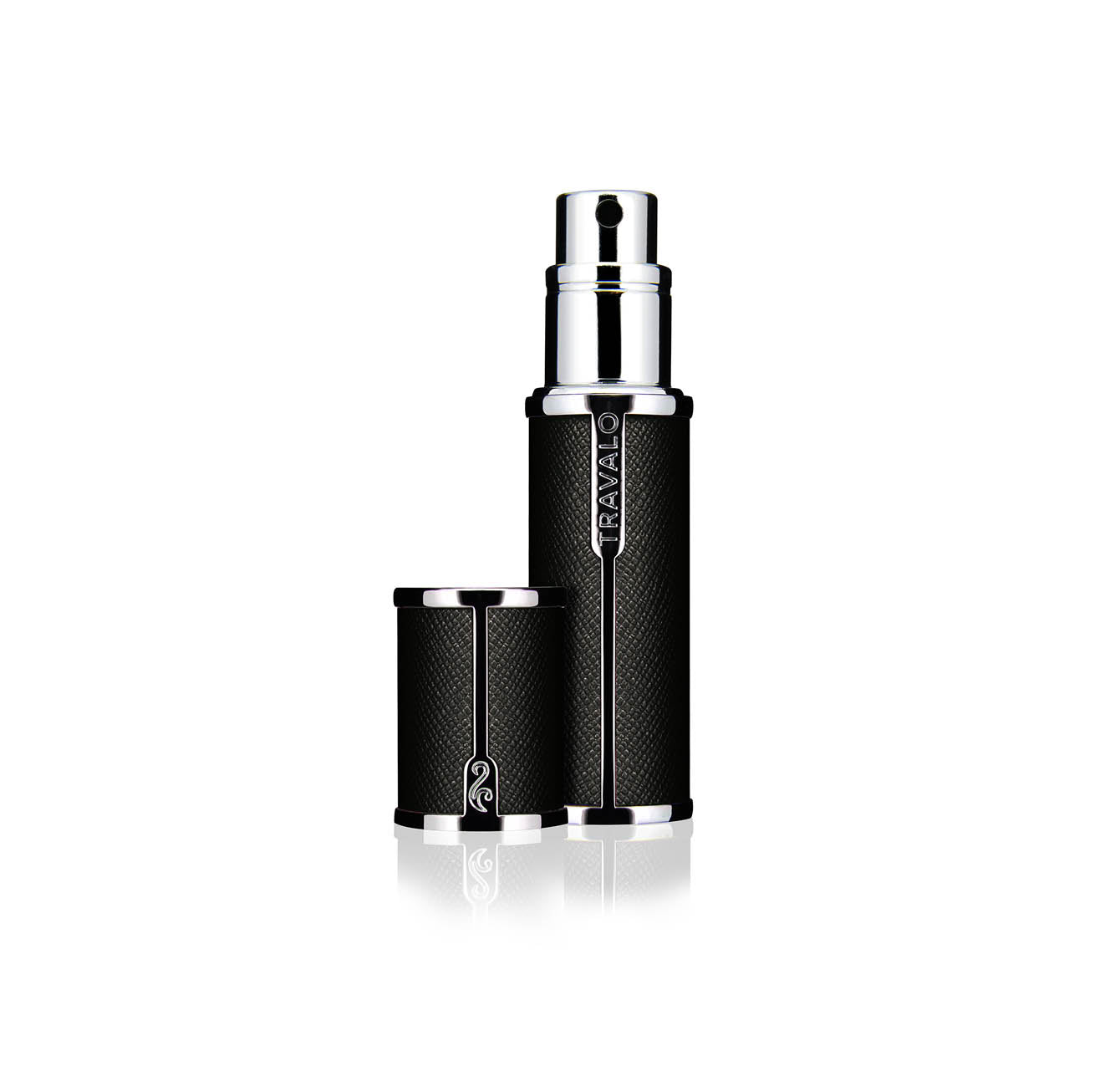 You and your favourite scent can now travel in style with this Black Travalo Milano, a refined and luxurious portable fragrance atomiser. Made from aircraft grade aluminium and totally free of glass, it is light, strong and approved for airline carry-on baggage. Finished in a durable and tactile faux leather with finely crafted and polished metal detailing, Milano is a wonderfully balanced, high quality product that feels great to hold and use. Travalo's incredible high definition spray head produces a fine, luxurious fragrance mist. Like all Travalo atomisers, the 5ml reservoir refills in seconds directly from most standard perfume bottles. The innovative Genie-S 'pump to fill' refill system perfectly transfers your fragrance without spills or damaging exposure to air, giving you approximately 65 sprays. Travalo's U-change system makes the refillable inner vial removable so that you can change your fragrance in an instant with no cleaning and no need to run it to empty! Take off your perfume bottle spray head and remove the Travalo engine (inner vial) from the case. Pump the base of the engine on the perfume bottle nozzle until full and then replace engine in the case.