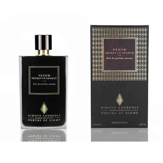 Venom- Secret of Shaman takes you on a cosmic journey inspired by Shamanic retreats, ancient Mayan ceremonies and Bufo Alvarius rituals. This potent perfume with its blend of spices, woody depth, leather and tobacco aims to transport you into a supernatural realm conjured by the depth of Mexican mysteries. The fragrance opens with vibrant Saffron and Dates before unfolding into intense notes of hypnotic Tobacco and spicy Woods channeling the Shamanic energy in a luxury fragrance for the modern mystic. FRAGRANCE -Spicy - Woody - Leather. Key Notes Saffron, Dates, Dried Fruit, Black Pepper, Tobacco, Leather, Ritual Resins, Vanilla, Patchouli, Helichrysum.